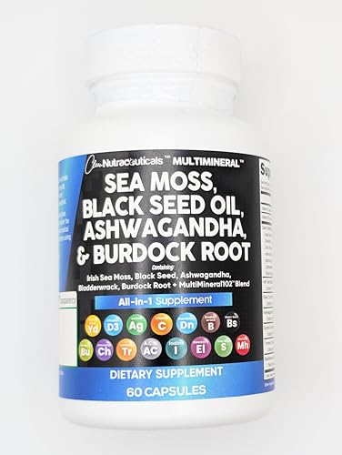 The Raw Sea Moss and Black Seed Oil Capsules You’ve Been Looking For – Clean Nutra’s MultiMineral provides 6 full-dose products in one, containing a full Irish Sea Moss Powder, Black Seed Powder, Ashwagandha Extract, Bladderwrack Powder, and Burdock Root Powder in a convenient all in one supplement! Finally, irish sea moss wildcrafted, black seed, ashwagandha powder, bladderwrack herb and burdock root pills have been packed into one convenient solution that’s quick and easy to take.