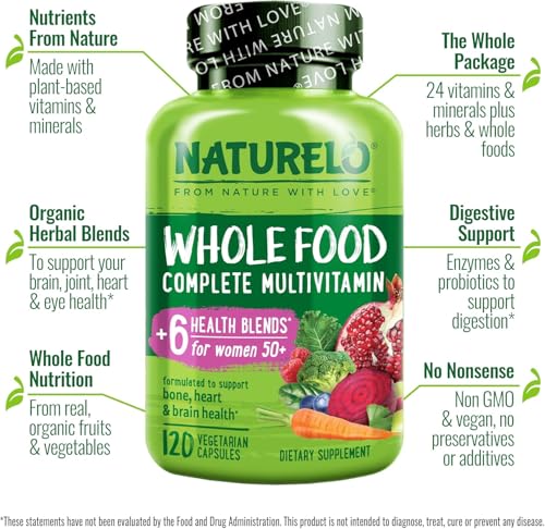 Specification: NATURELO Whole Food Multivitamin for Women 50+ (Iron Free) with Vitamins, Minerals, & Organic Extracts – Supplement for Post Menopausal Women Over 50 – No GMO – 120 Vegan Capsules