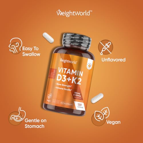 Specification: WeightWorld Vegan Vitamin D3 K2-120 Capsules – 5000 IU D3 & K2 120mcg for Bone Strength & Immune Health – K2 D3 Vitamin Supplement Plant-Based Cholecalciferol from Wild-Harvested Lichen